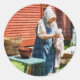 Lady Doing Laundry Classic Round Sticker