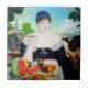 Lady Drinking Tea with Cat tile. Oil on canvas from 1918. One of the great commercial and art nouveau painters working in Russia, Boris Kustodiev employed a style that emphasized bright colours, sharp figures and striking landscapes. This is one of his most charming paintings which features a merchant’s wife drinking tea before a rich table set with watermelon, fruit, bread and beautiful pewter ware. A happy cat rubs up against her shoulder. The woman wears a pretty blue bonnet and the summer in Moscow is warm with a bright sky. A great gift for fans of Boris Kustodiev, Russian Art, cat paintings, and art nouveau.
