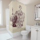 lady drinks tea shower curtain