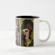 A collection of four paintings of ladies on a mug. Don't worry, none of these ladies are mean muggin' you!