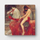 John Collier Lady Godiva plaque. Oil painting on canvas from 1897. Pre-Raphaelite painter John Collier’s most famous painting, Lady Godiva depicts the legendary Anglo-Saxon noblewoman riding into to town on her horse in protest of her husband’s high taxes. The horse she rides is white and tall and wears a red horse blanket and bridle. A pretty gift for fans of John Collier, The PreRaphaelites, Lady Godiva, and History Paintings.