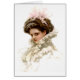 Lovely brunette lady with pink hair bow and frilly cape is the focus for these pretty vintage art gifts and apparel.
