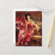Giovanni Boldini Lady in Red postcard. Oil painting on canvas. Italian artist Giovanni Boldini created some of the most stunning portraits of the early twentieth century. Lady in Red is one of his most famous works, and features a woman with dark hair wearing a stunning red dress with a large rose corsage. Behind her sits a red bouquet of roses. A pretty gift for fans of Giovanni Boldini, Italian art, and vintage prints.