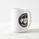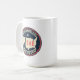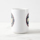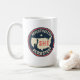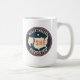 Support the voice of women in America with an anti Trump coffee mug! Iconic round logo symbol design with the Statue of Liberty over a map of the USA. Perfect classy mug for feminist activists. Blue, cream, and red colours. Elizabeth Warren power quote with your morning brew: Nevertheless She Persisted
