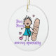 I was extremely happy to find a tree ornament for my Occupational Therapist daughter. (I bought one a few years ago for my Paramedic son) & prior to seeing this I was trying to work out how I could create something similar for her. Unfortunately my first order was deemed lost in the mail which meant it didn't arrive in time to give my daughter when she finished Uni. However the Zazzle Support team were fabulous & organised a replacement quite quickly. My daughter is very happy. Thank you. Nice ornament, love the colours