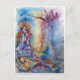 Colourful ,whimsical ,romantic, symbolist contemporary watercolor painting in soft blue,pink ,red, purple, violet, white colours for a spiritual,mystic Celtic legend by Alessandro Lumini 1989 .This cool and artistic design is also a beautiful gift for special occasions ,birthdays ,weddings,Christmas, holiday,Valentine's Day,Mardi Gras ( Fat Tuesday ) season. ----Vivien , this mysterious female gave Arthur his sword, Excalibur. She stole Lancelot when he was a child and cured him when he went mad. She may be a Celtic lake divinity in origin, perhaps of the same kind as the Gwagged Annwn - lake fairies in modern Welsh folklore. Vivien may very well have been the Lady of the Lake in the Arthurian Legends and stories. She, sometimes called Nineve, Nimue, Niniane, etc., is best known as the woman who sealed Merlin in a cave or a tree.