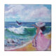 Lady on Beach with Humpback Whale Ceramic Tile