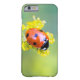 close-up of a ladybug on little yellow flowers - summer beauty
