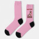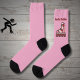 Pink colour socks with a pink roller skate and red lettering. Guess if it's intended for a male roller skater or a female inline skater?