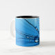 A beautiful, bright blue image of water droplets on a dandelion seed titled "Lady Sings The Blues" cheers up this coffee mug.