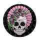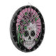 Lady sugar skull with roses in hues of pink is a beautiful Dia de los Muertos skull design the ladies will love.