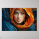 This striking portrait imagines Wisdom as described in the Bible —radiant, strong, and full of grace. Cloaked in deep blue and glowing orange, her gaze is steady and inviting. A beautiful reminder for Christians to seek wisdom from above and listen to her voice in all things.