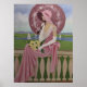 Original acrylic painting of a vintage lady with a parasol, painted on canvas..........A beautiful vintage lady dressed in pink and holding yellow roses. She is seated on a balcony that overlooks a beautiful view of land and water with sailboats. Charming and elegant and a delight to view. Also a great gift item.