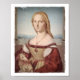 Vintage painting of woman holding a little unicorn on her lap. Painted by Leonardo DaVinci.