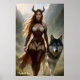 An alluring horned demoness and her spirit wolf radiating wild beauty, confidence and fantasy in a breathtaking gothic scene.