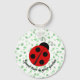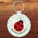 Ladybug on Leafy Background Design Keychain with customisable text. For no text, remove the sample text and leave blank.
