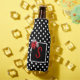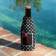 Fun black and white polka dot bottle cooler with cute graphics of a red and black ladybug sitting on the edge of a black text square. Personalise the red one letter monogram for yourself or as a cute gift idea for her.