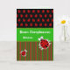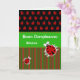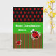 A modern birthday card design in italian which you can personalise for the recipient. The colour scheme is red, green, black and white, there are co-ordinating ladybugs and stripes patterns on the front and a further ladybug inside. Type in the boxes to change the greeting on the front "Buon compleanno", the name, and the greeting inside "Ti auguro una giornata piena di felicità e un anno pieno di gioia" (= "Wishing you a day full of happiness and a year filled with joy").