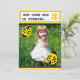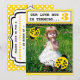 Cute and modern ladybug themed birthday party invitations feature a customisable photo layout, ladybugs, typography, and polka dot patterns in a yellow, white, and black colour palette scheme.