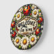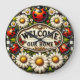 Brighten up your space with this charming wall clock featuring cheerful daisies and adorable ladybugs. The bold "Welcome Our Home" message is framed by vibrant flowers and insects, perfect for farmhouse or garden-inspired décor. Add a touch of whimsy and warmth to your home with this delightful and functional timepiece.