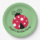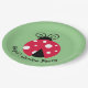 Ladybug with White Dots Design Paper Plates with customisable text and background colour.