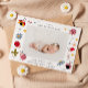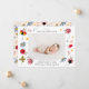 Cute birth announcement card with a photo of your newborn featuring illustration of ladybugs, flowers, and stars.