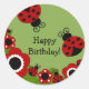 Cute Ladybug & flower Happy Birthday sticker. Great for birthday favour tag or thank you note envelope seal! Customise with your birthday invitation and you're all set to go! Matching invitations and postage stamps available in our shop www.celebrateitinvites.com.
