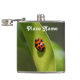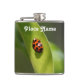 The flask itself is fine. It’s a cheap flask, obviously bought in bulk, however am prepared to overlook that. Given that it is a personalized item, I would have liked to have seen gift boxing instead of the generic packaging. Terrible printing, and/or quality. It’s a cheap, tacky vinyl. It is not cut straight and is also applied in a way that it is overhanging the bottom, causing the glue to catch on items and it will eventually roll and tear, damaging the wrap.