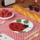 A red ladybug (ladybird) is at home in a patch of green heart-shaped clover. These bright, colourful paper plates will make a great statement at any birthday party or baby shower. Everyone will wonder where you found such beautiful, unique plates.