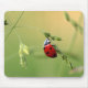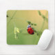 Mouse pad with the image of a ladybug sitting on a green plant.