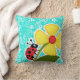 Ladybug on Aqua Colour Paisley; Floral Cushion