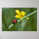 A ladybug (aka ladybird or ladybeetle) taking a stroll along a blade of grass with a yellow ragwort flower in the background. Macro photography taken in the UK. Customise to add your own text and other options.