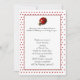 This precious baby shower invitation is a wonderful way to invite your guests to join you in celebrating your new arrival. This design has a white background with red polka dots and a ladybug at the top. Your party details go below and are completely customizeable. Just add your Shower details and you are ready to go!