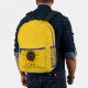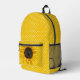 White polka dots on a yellow quilted background with a ladybug on a sunflower petal