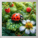 Ladybug Perched on Dew-Covered Strawberry Plant Poster
