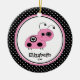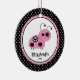 Dated Cute pink ladybug girl Christmas Ornament set on a black & white polka dotted background. A Wonder Christmas gift sure to be treasured for many years to come.