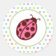 A pink and brown ladybug is the focal point of this sticker. Use these cute ladybug stickers for gifts, gift bags, a scrapbook, a birthday, baby shower, crafts, envelope seals, invitations, school, business, home, office, etc...The design is from original art.