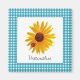 A cute blue gingham magnet with a bright and cheery yellow sunflower with a cute little red spotted ladybug sitting on its petals. Personalise by adding your name to this country style design sure to put you in a happy summertime picnic mood!