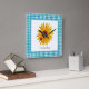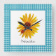 A cute blue gingham square clock with a bright and cheery yellow sunflower with a cute little red spotted ladybug sitting on its petals. This country style design is sure to put you in a happy summertime picnic mood!