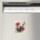 Magnet features watercolor artwork of a ladybug perched on a flowering plant.