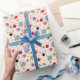 Cute ladybug theme wrapping paper featuring illustration of red and pink bugs with widlflowers.