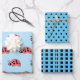 Ladybugs blue and black dots and squares wrapping paper sheet