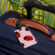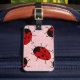 I was happy with the acrylic tag but it came with a thin leather strap to attach the tag to luggage (like a cat collar). I replaced the strap with a metal ring off of a key ring as the leather strap would come undone or break easily as luggage is sometimes handled without much care by airlines. Printing is great. Colours and positioning of the design I put on the tag were perfect. Very pleased.