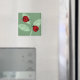 Custom Magnet has two cute red ladybugs on leaves with a green background.