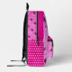 Typographic name text hot pink and pinks with black and white custom girl backpack. Fun personalised graphic ladybug / ladybird pattern design personalised backpack, ideal for, school, college, school camp or nature trips out. Personalise with your own name, currently reads Olivia for help with personalisation and other name lengths please contact me. © Design by Sarah Trett for www.mylittleeden.com