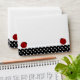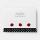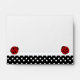 Mid-sized invitation and card envelope. This pretty envelope is trimmed with black with white polka dots, and ladybugs.