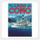 Vintage travel poster for Lake Como, Italy, showing a lake steamer with mountains in the background.