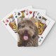 Lagotto Romagnolo Lying On A Wooden Bench Playing Cards