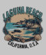 Kid's hooding featuring a retro style vignette of the Laguna Beach, CA waterfront. Available on a variety of clothing and accessories