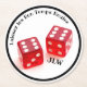 As they say in New Orleans, "Laissez les Bon Temps Rouler"—Let the Good Times Roll—with these stylish round paper coasters! Featuring two red dice on a classic white background, these coasters bring a little Vegas vibe to your space. In bold black, white, and red, they’re the perfect mix of fun and flair. Personalise with initials for the ultimate winning touch, making them ideal for your game room, home bar, or man cave. Take a chance on these fun coasters and roll the dice for a great time!